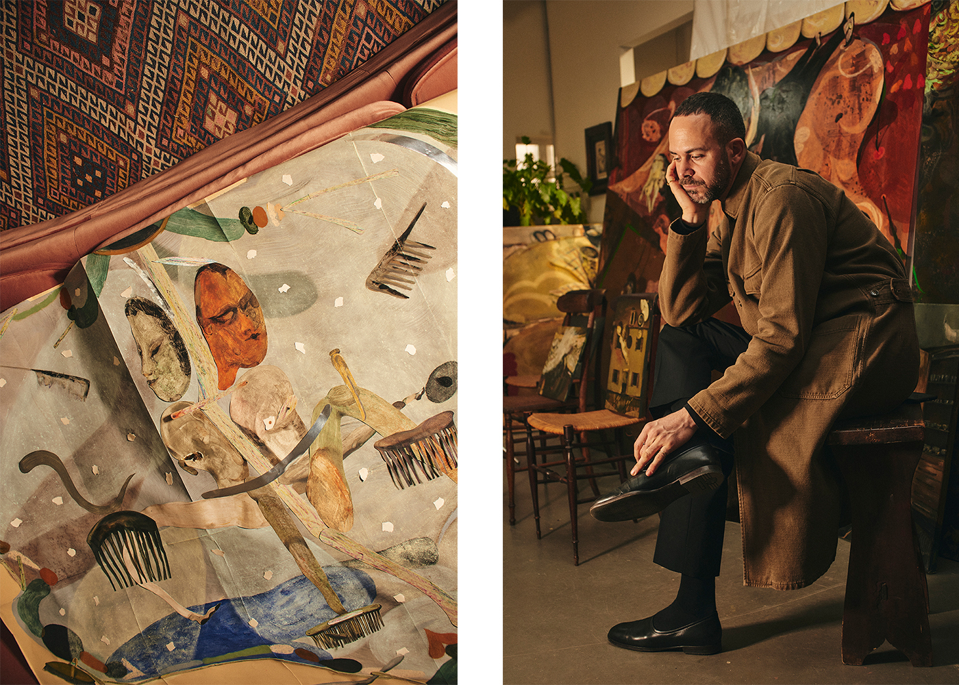 I visits the artist at his studio home in Turin to find out more about his rich, nostalgic universe. He recalls reading Little Red Riding Hood as a child and finding the end, when the grandmother is saved and the wolf killed, boring. “I changed it and made Little Red Riding Hood fall in love with the wolf and then travel the world together. It’s through facing and embracing fear that you can manage. I don’t believe in Once Upon a Time.”